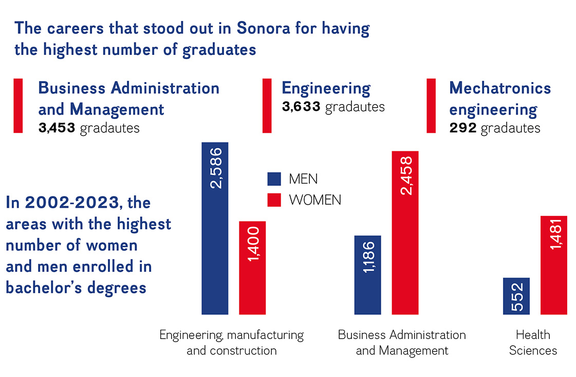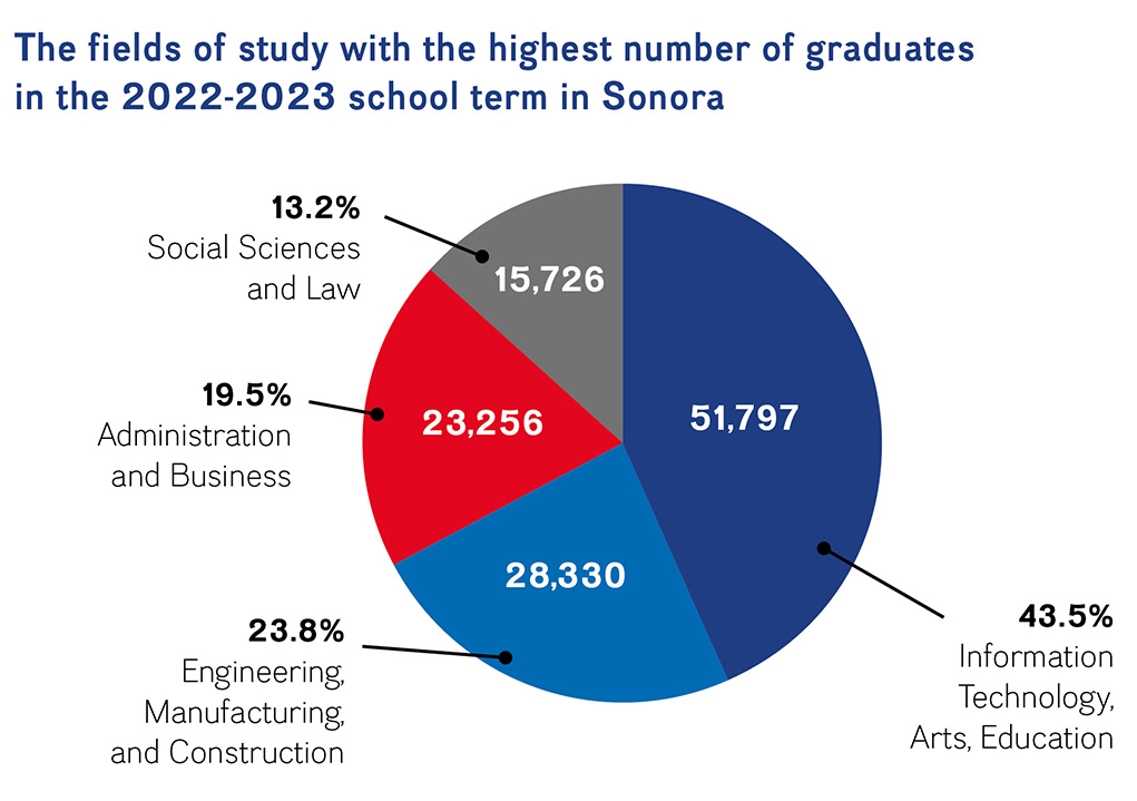 In Mexico, there are 151,435 young people enrolled in engineering, manufacturing, and construction programs, of which 28,330 students are from the state of Sonora